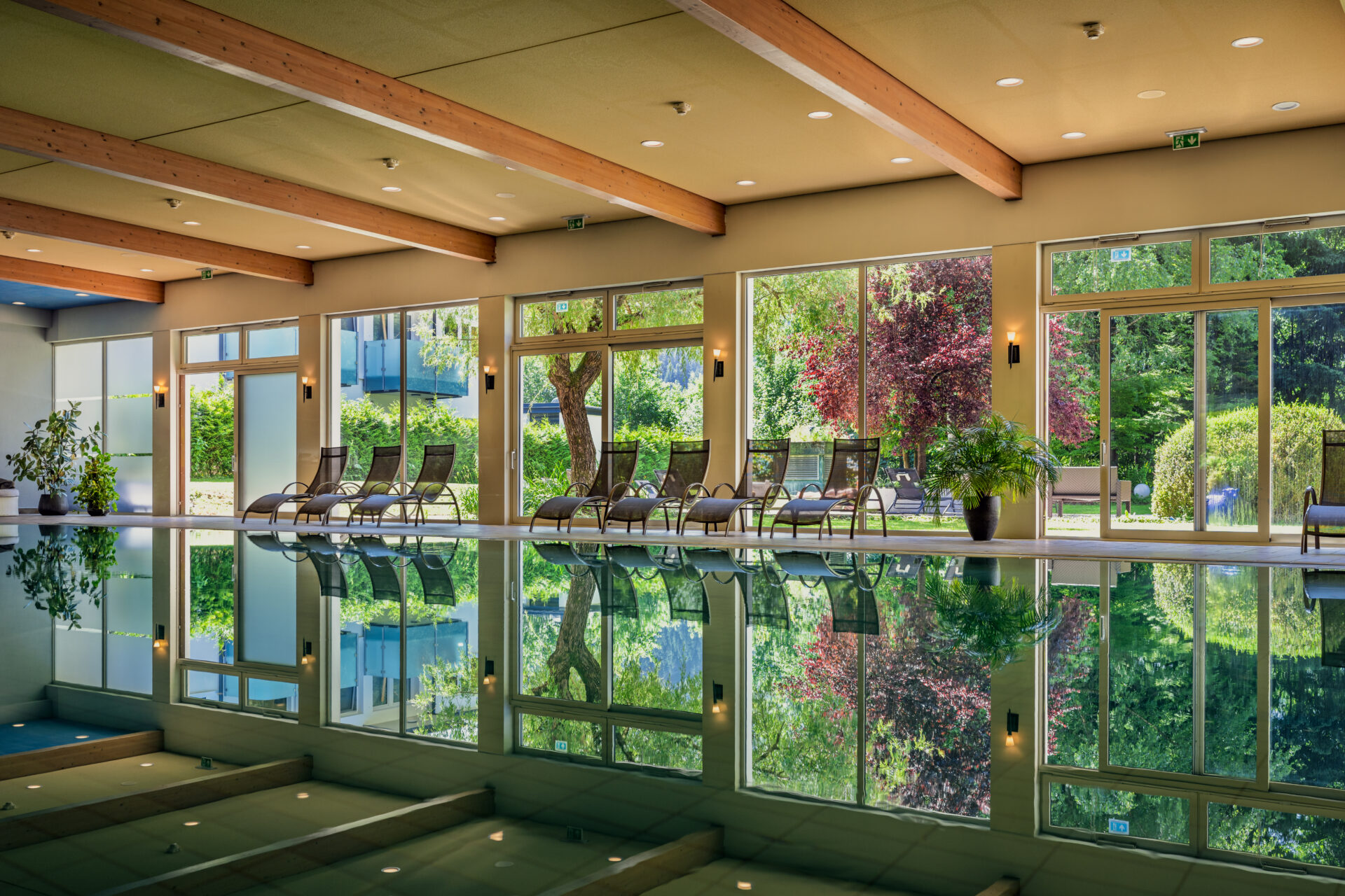 Unser 18 Meter langer Indoor-Pool steht für Ihre Entspannung täglich kostenlos zur Verfügung. Tauchen Sie ein und lassen Sie sich von den wohltuenden Wasserbewegungen tragen, während Sie den Alltagsstress hinter sich lassen.